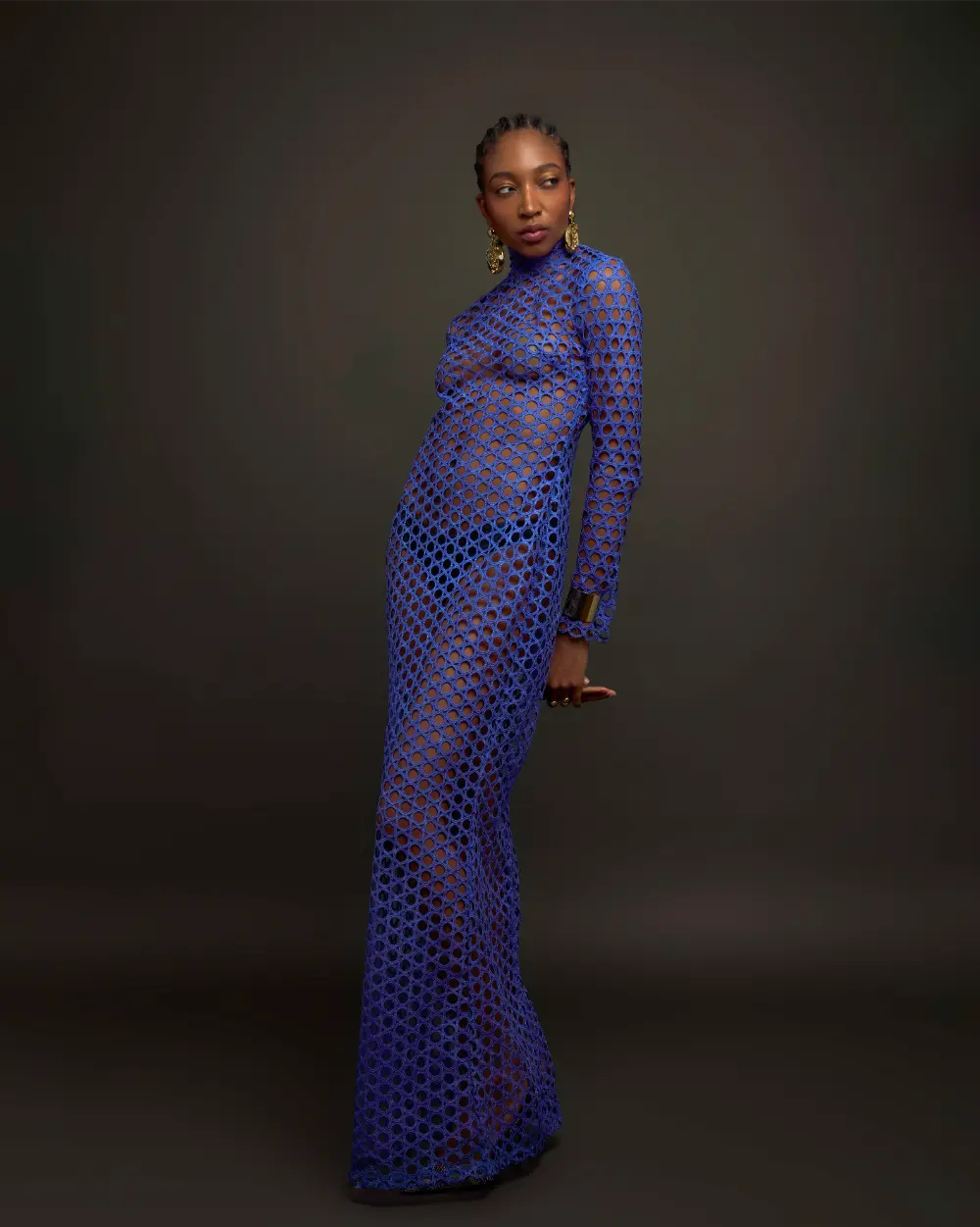Layla, a hand-knitted mesh dress, honors "Nne". Its sleek design embodies maternal strength and beauty. Each stitch reflects a mother's care. This elegant dress with pant celebrates every stage of motherhood, from new beginnings to seasoned wisdom. Layla's unique design and luxurious feel make it the perfect statement piece for any occasion.