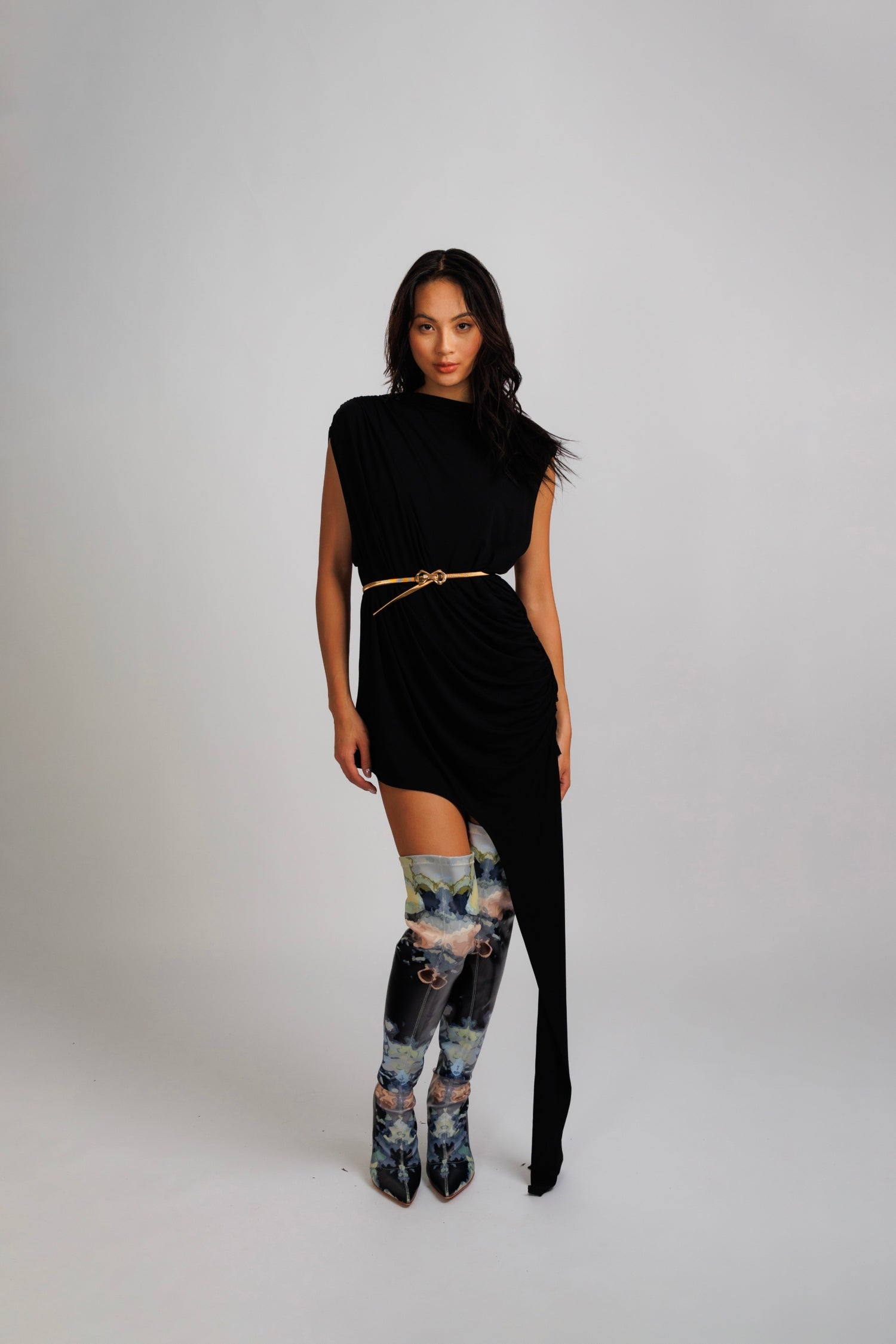 Our black Bri asymmetrical dress from Collection 0012 is THE minimalist piece for UNISEX fashion. This transitional piece made from sustainable natural fibers is gender neutral and can be styled as a top, a layering piece, or a dress.