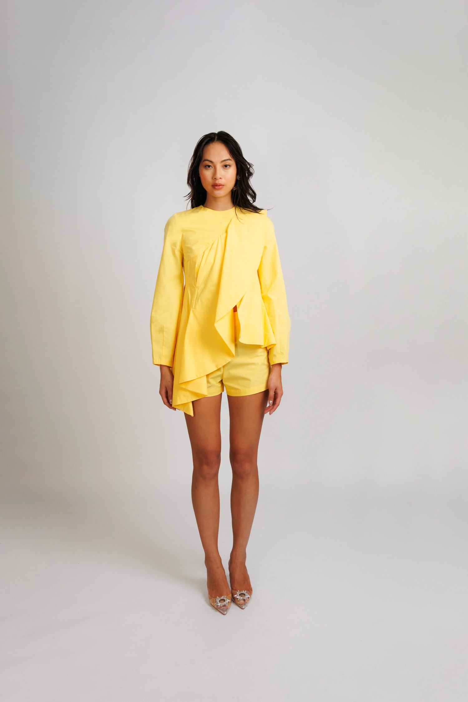 Our Tamron two-piece set from Collection 12 is our 'Ode to Summer' in a bold color that drapes the body delicately. The asymmetrical ruffles are created to evoke the gentle flow of waves crashing on the shore. Featuring sustainably sourced organic cotton you can feel empowered when you wear this set to your next meetup or outdoor brunch.